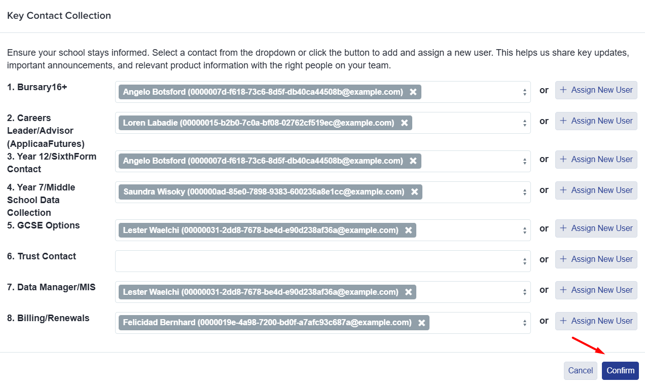 Please ensure that when the pop-up does appear that all the contact has been completed, so we have the correct contact details for each leader in your school.