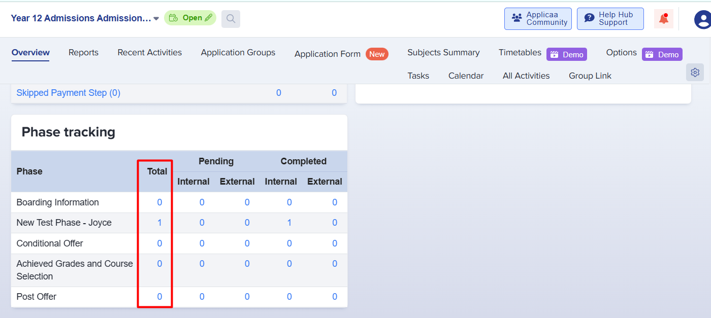 This improvement provides a clear summary of totals across phases and allows quick access to student lists, helping staff efficiently manage workflows.