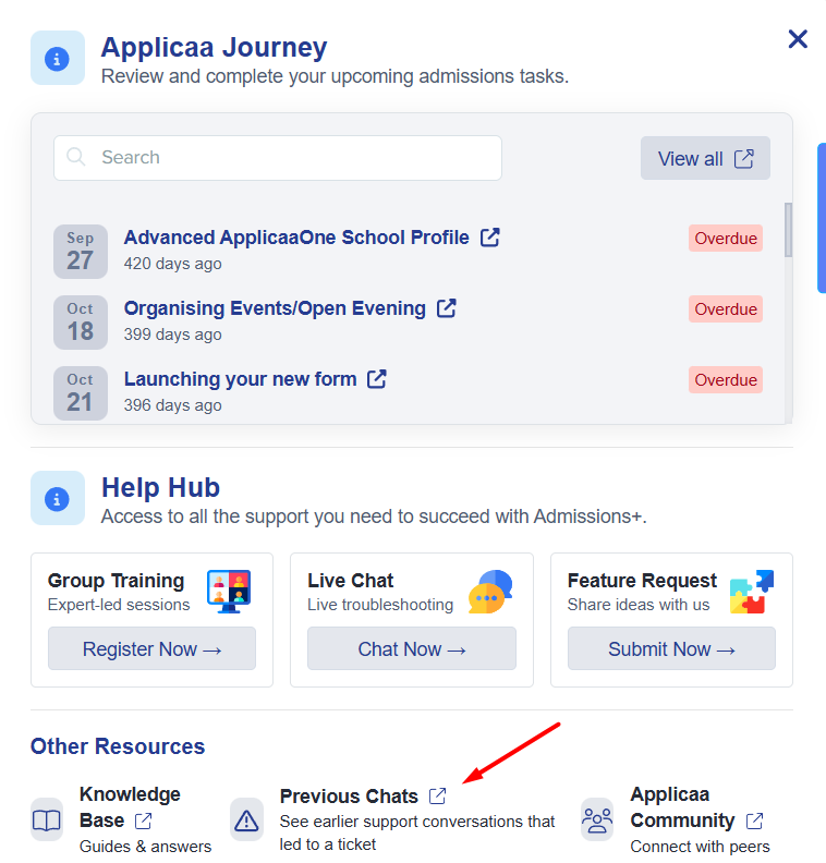 A ‘Previous Chats’ feature has been added to the Help Hub, allowing users to view prior chat conversations that resulted in ticket creation.