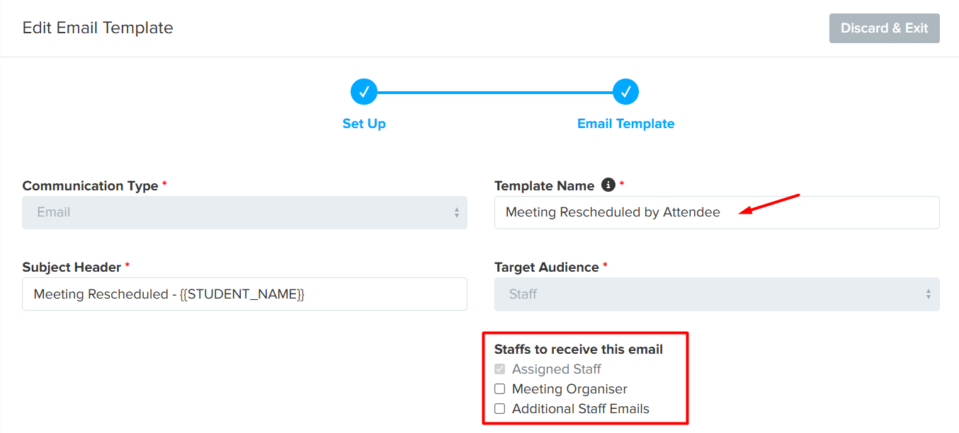 You can also specify which staff members receive an email notification when students reschedule their meeting.