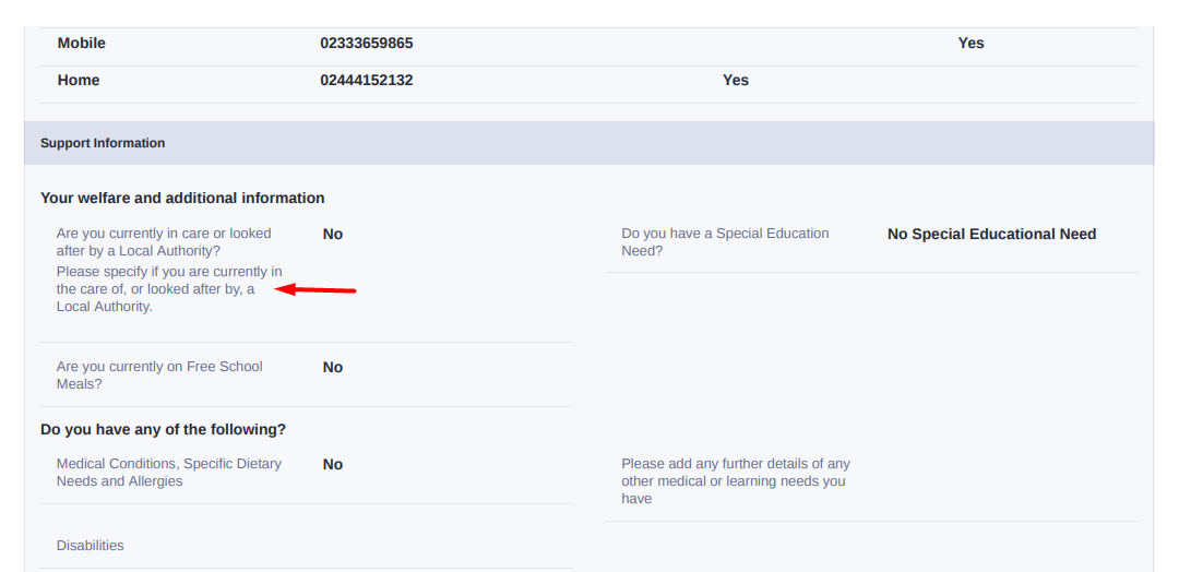 Student’s mobile numbers and email addresses now appear on their homepage when they log in. If a student has both a personal and school email, both will be displayed and clearly labelled for clarity.