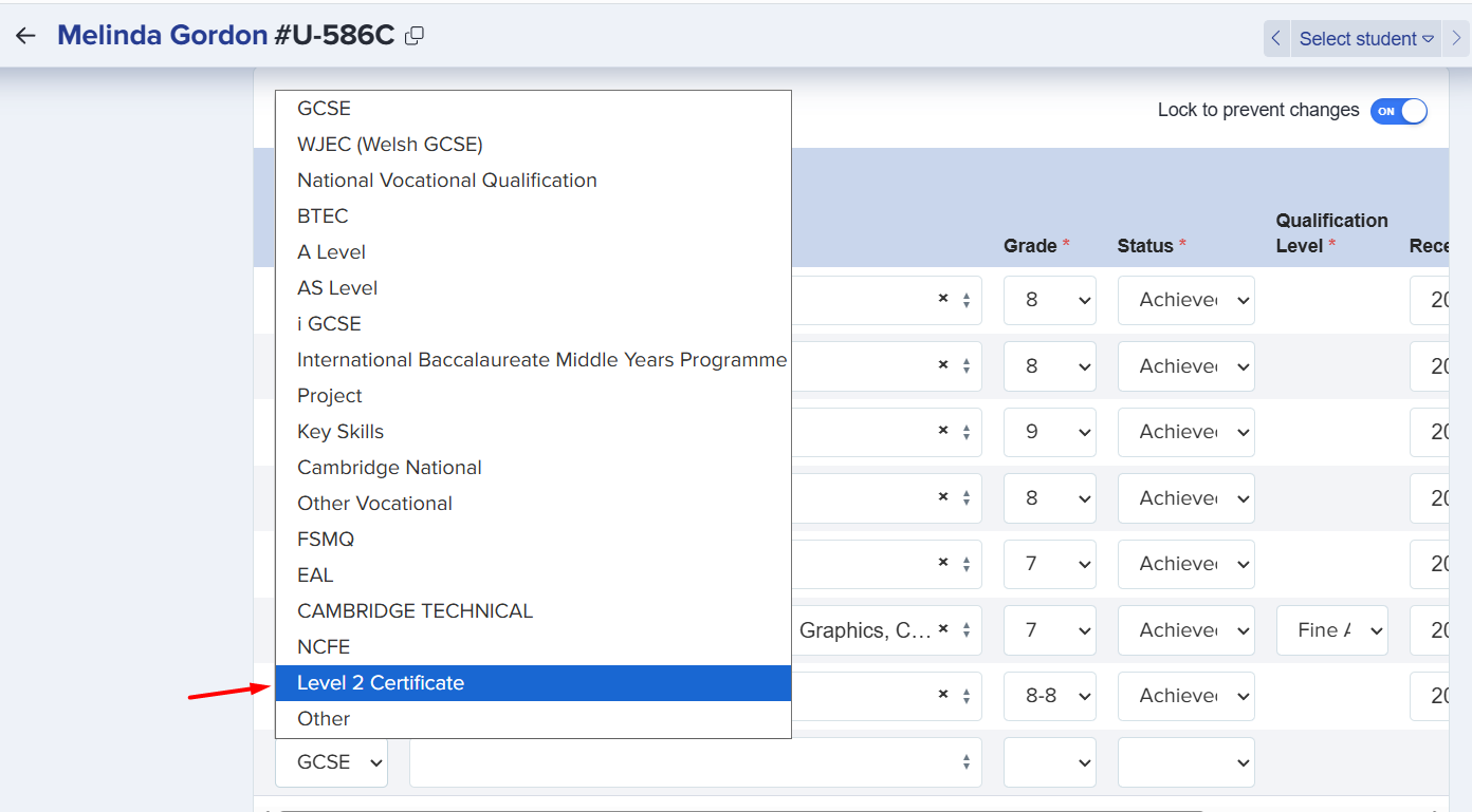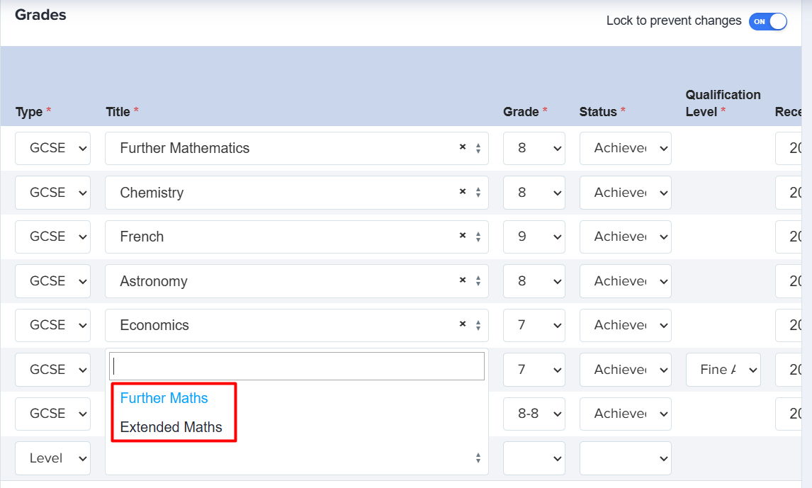 You can now record grades for Further Maths and Extended Maths under the Level 2 Certificate qualification category, using the standard 1 to 9 grading scale.