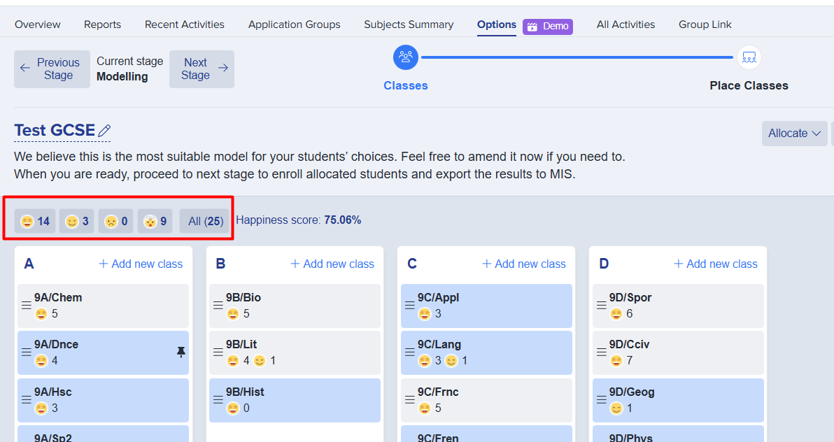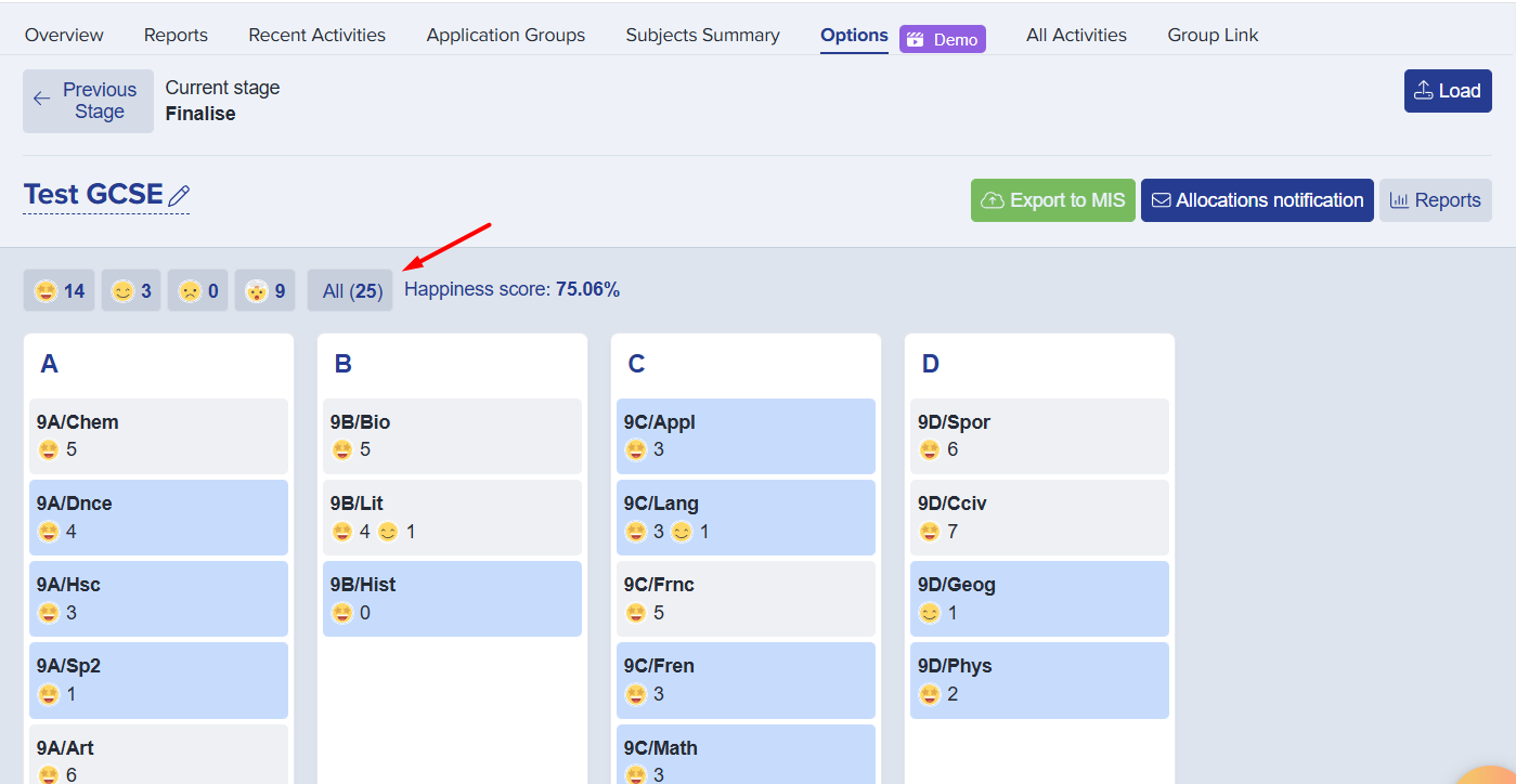 A new ‘All’ button has been added next to the emojis, allowing users to view all students associated with the Options model in one place.