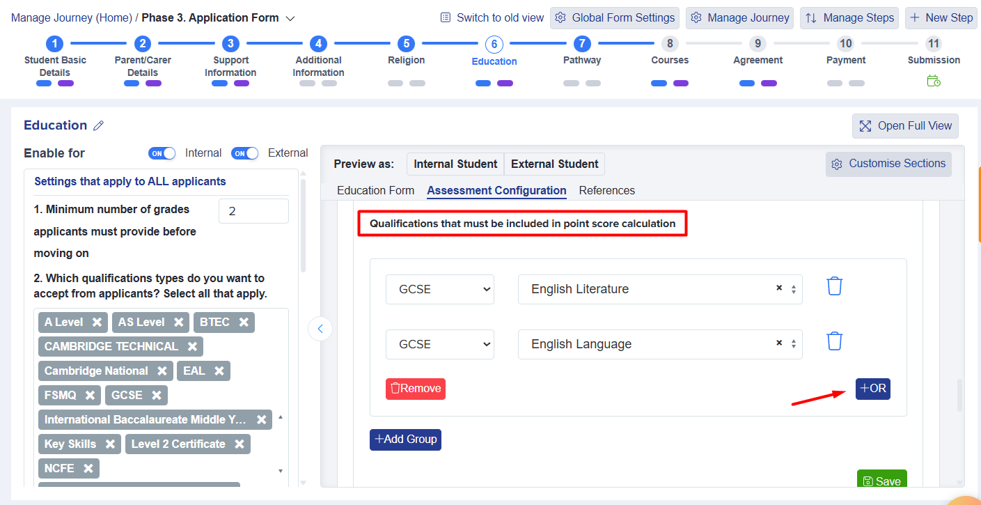 Point Score configuration now supports OR conditions, giving you greater flexibility when defining qualification requirements.
