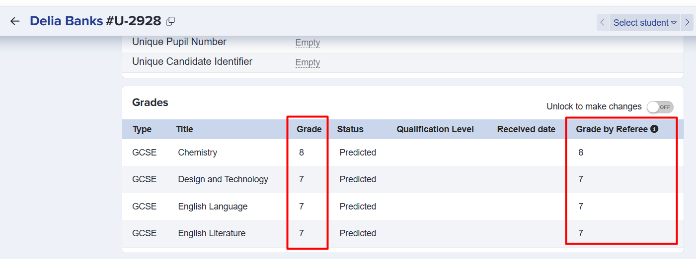 Display student grades in Grade by Referee column when referee confirms grades are accurate